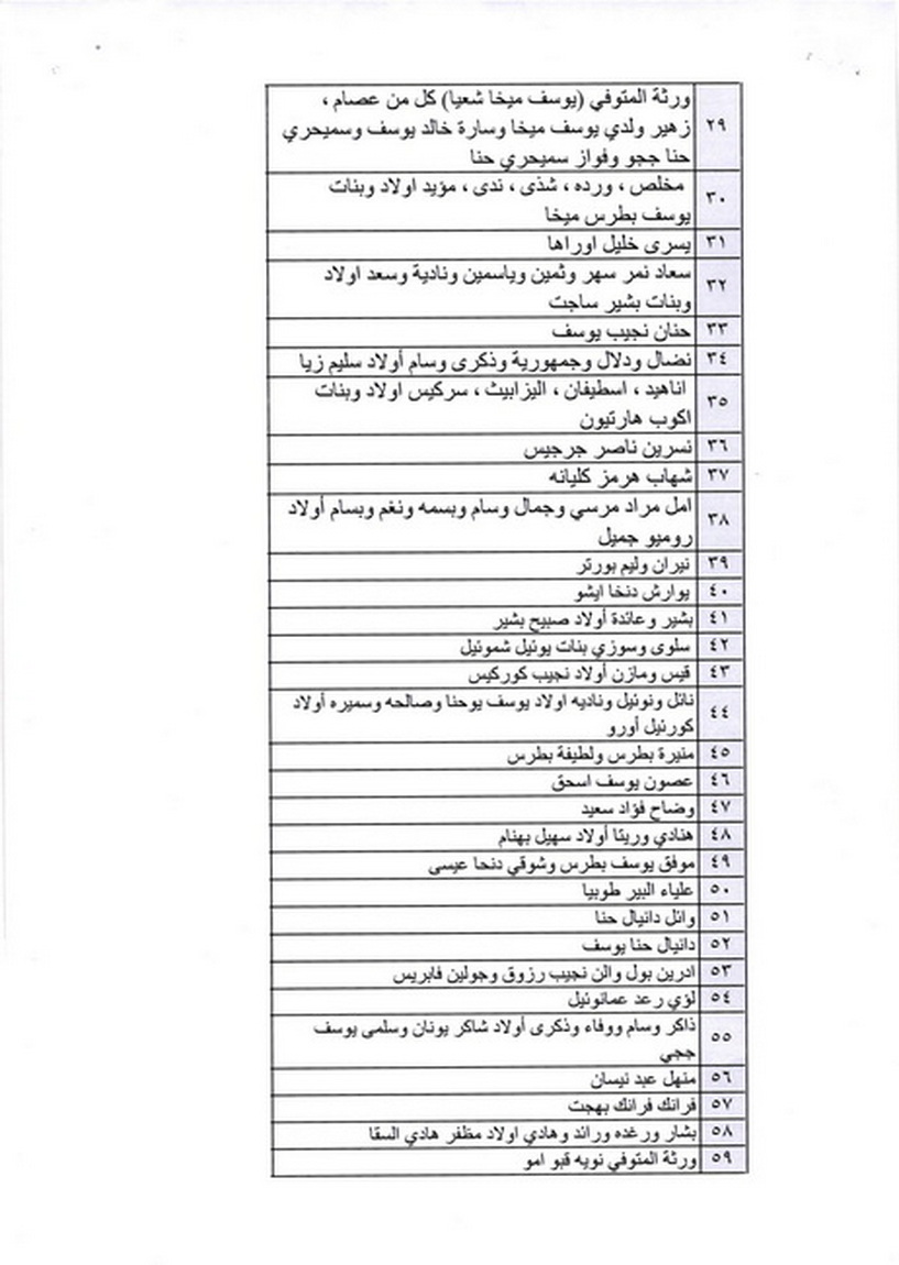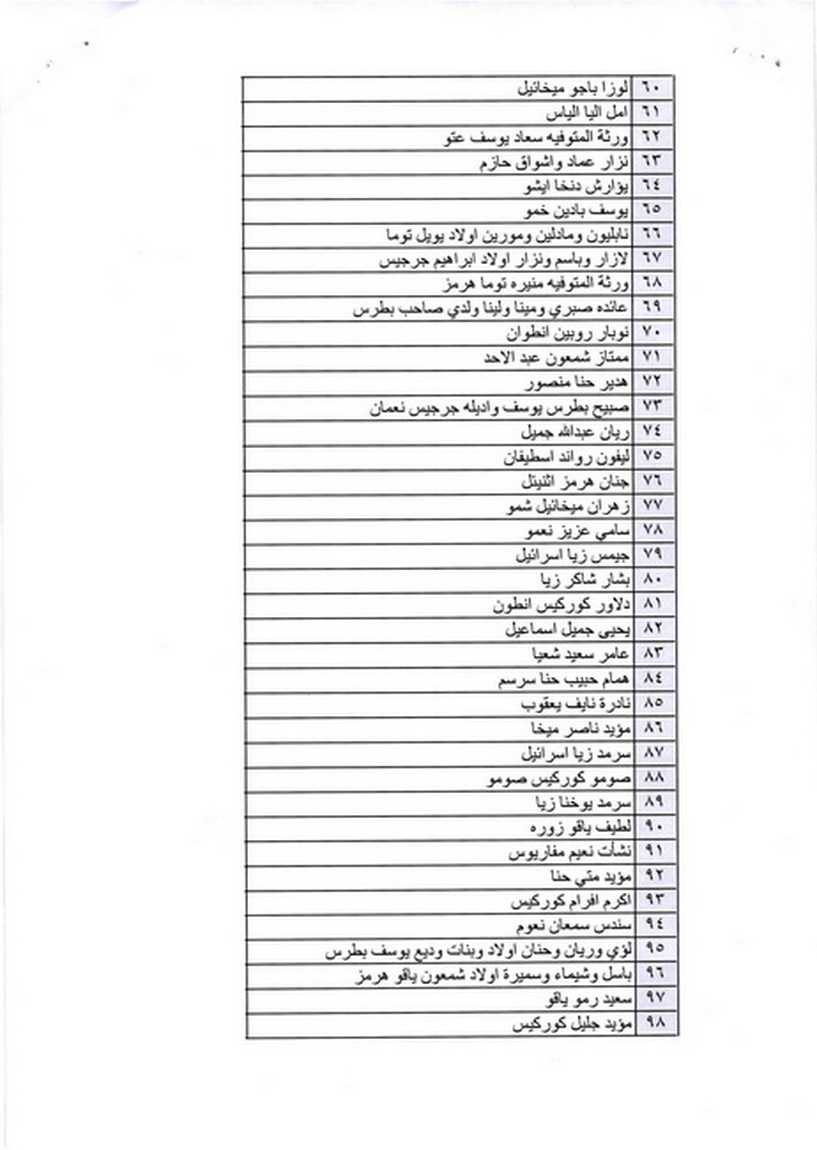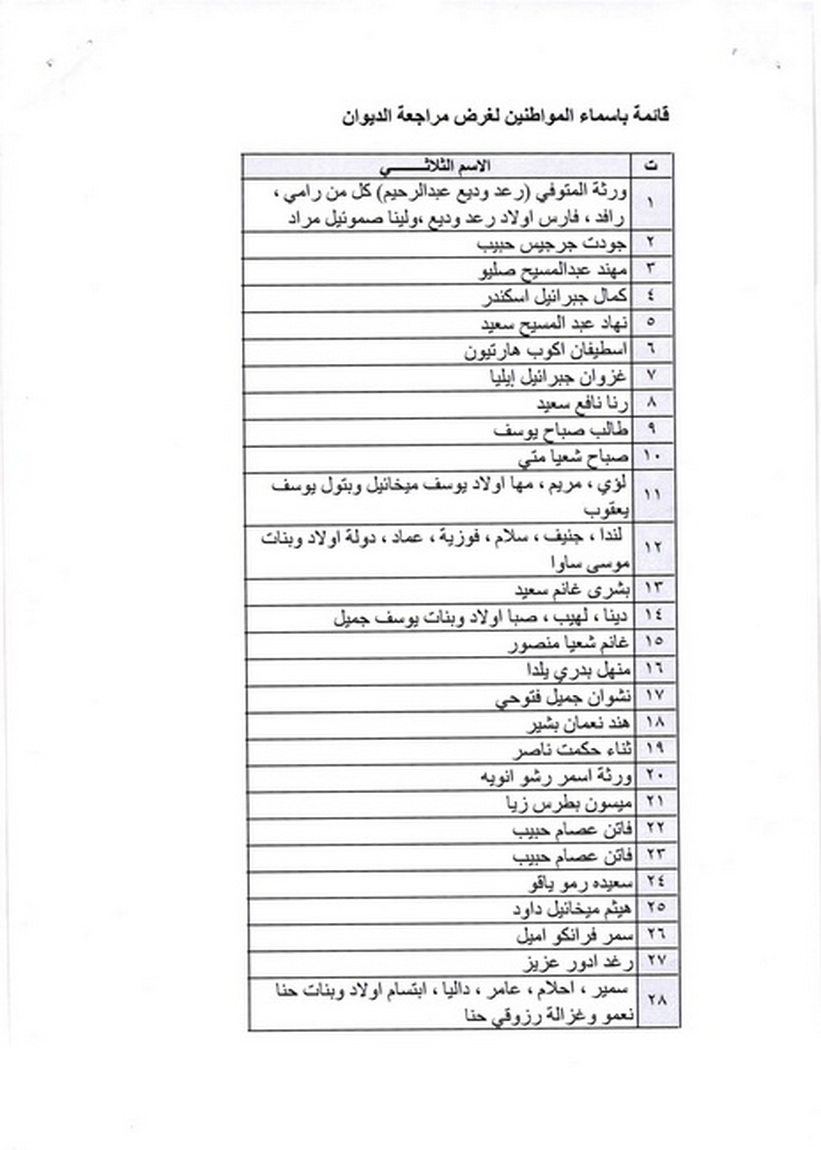 يرجى من المواطنين المدرجة اسمائهم في الجدول ادناه مراجعة مقر الديوان لجنة التصديق على بيع عقارات المسيحيين والايزيديين والصابئة المندائيين لاكمال المعاملات الخاصة بهم