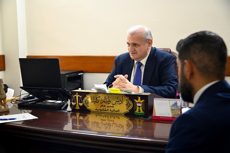 استقبل السيد أدسن وليم كليانا، مدير عام الدائرة القانونية يوم الأربعاء ٣ أيلول ٢٠٢٥، وفداً من مجلس الخدمة العامة الاتحادي برئاسة السيد إبراهيم صالح أحمد، مدير قسم الهياكل التنظيمية في المجلس.